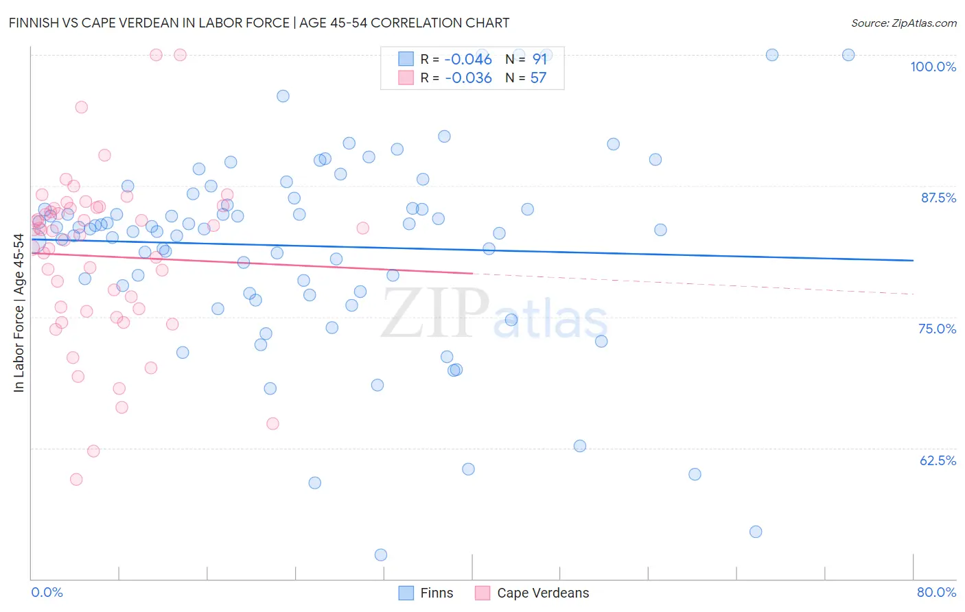 Finnish vs Cape Verdean In Labor Force | Age 45-54 Correlation Chart