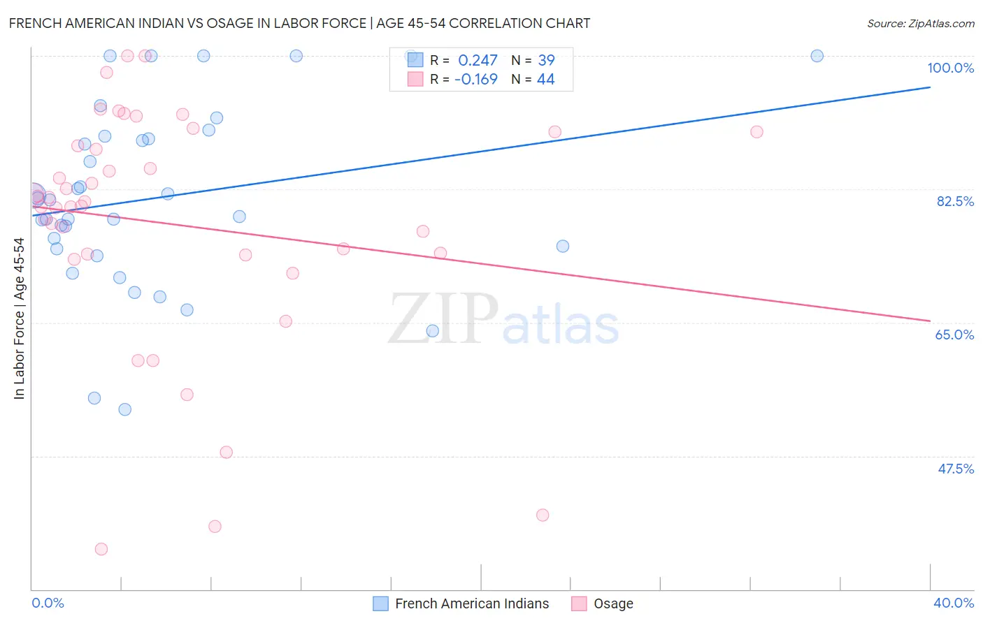 French American Indian vs Osage In Labor Force | Age 45-54 Correlation Chart