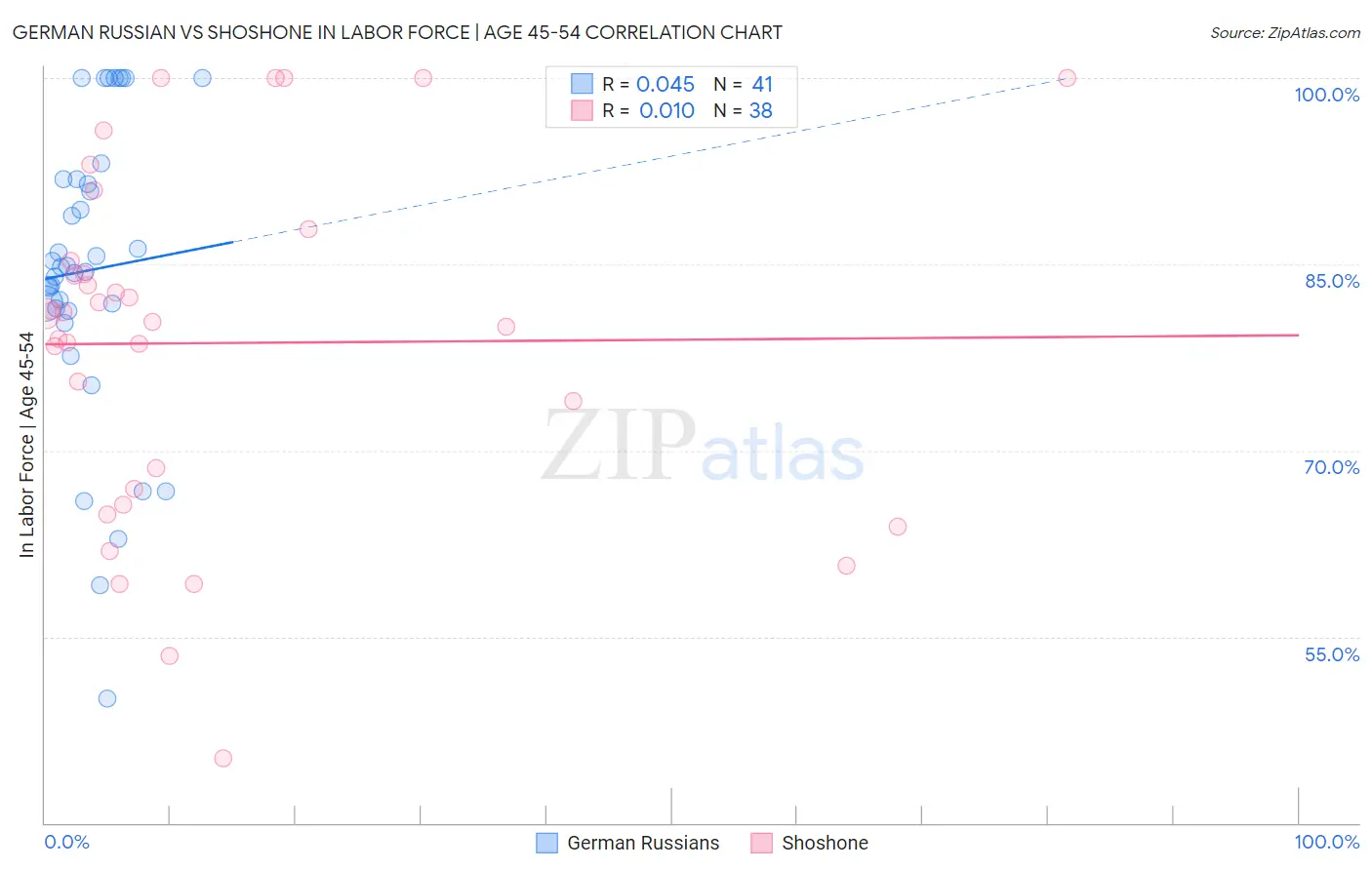 German Russian vs Shoshone In Labor Force | Age 45-54 Correlation Chart