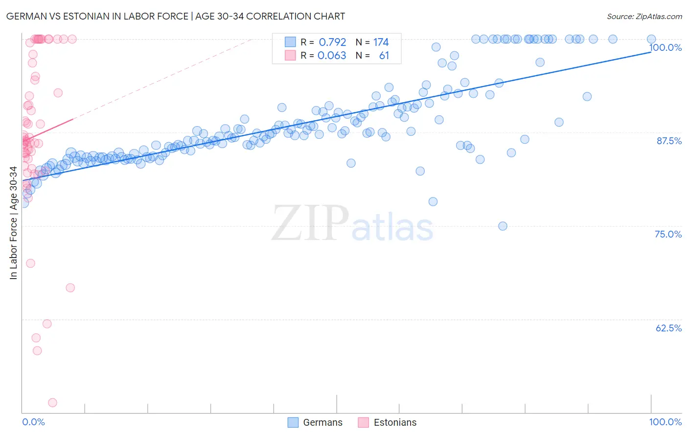 German vs Estonian In Labor Force | Age 30-34 Correlation Chart