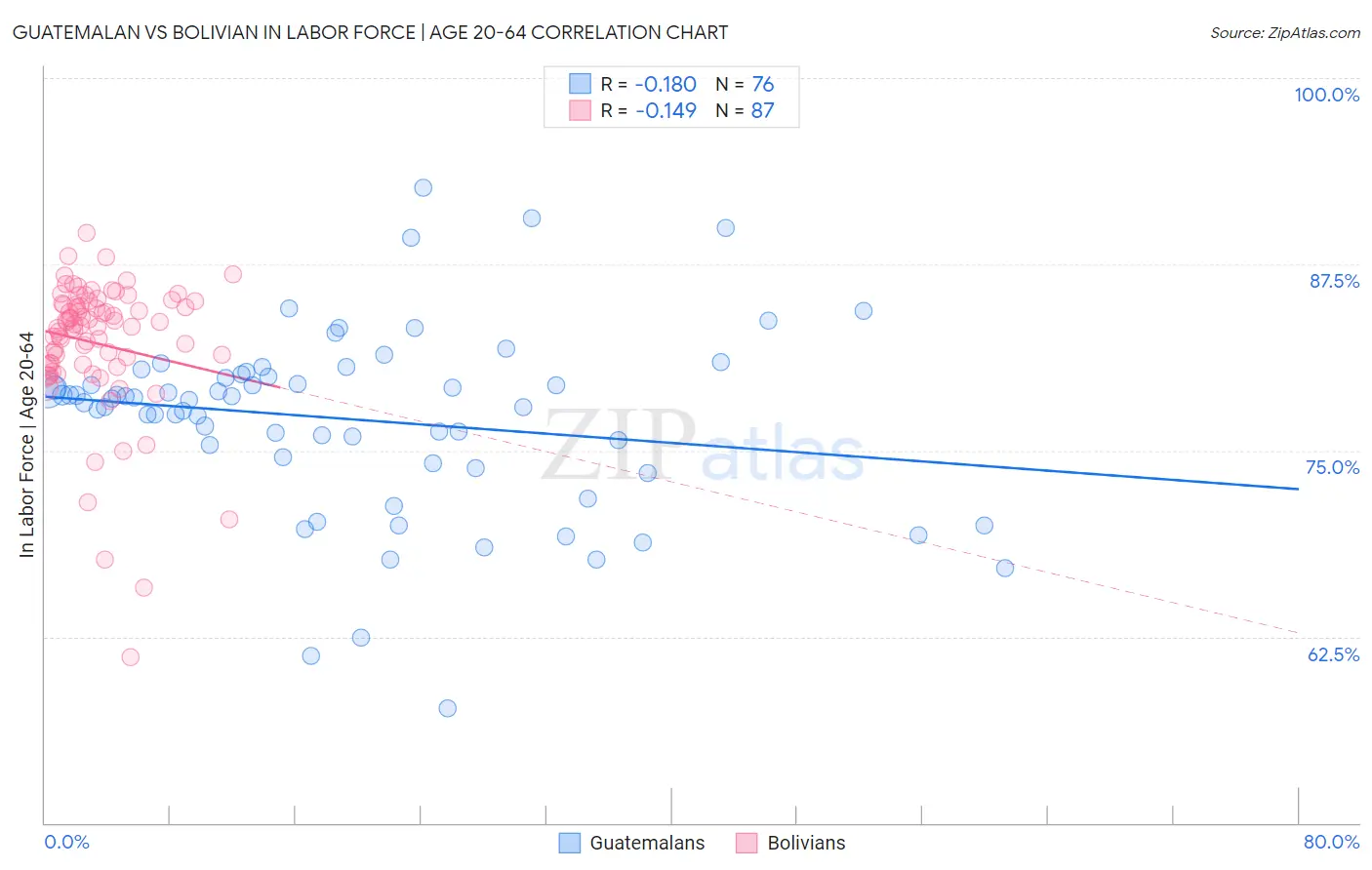 Guatemalan vs Bolivian In Labor Force | Age 20-64 Correlation Chart
