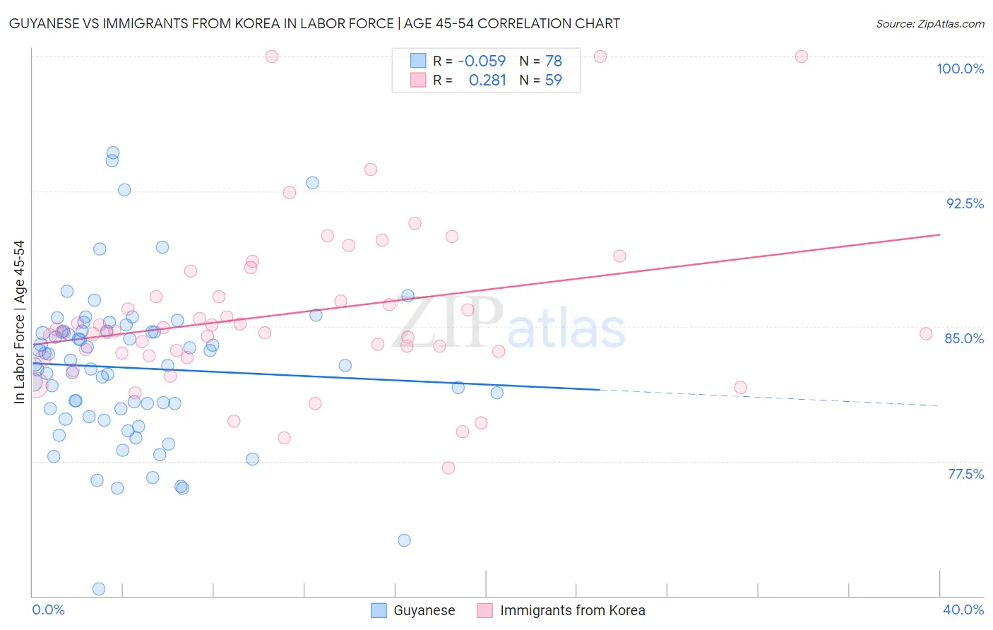 Guyanese vs Immigrants from Korea In Labor Force | Age 45-54 Correlation Chart