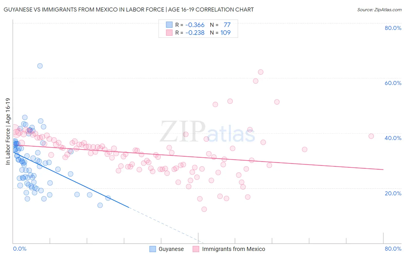 Guyanese vs Immigrants from Mexico In Labor Force | Age 16-19 Correlation Chart
