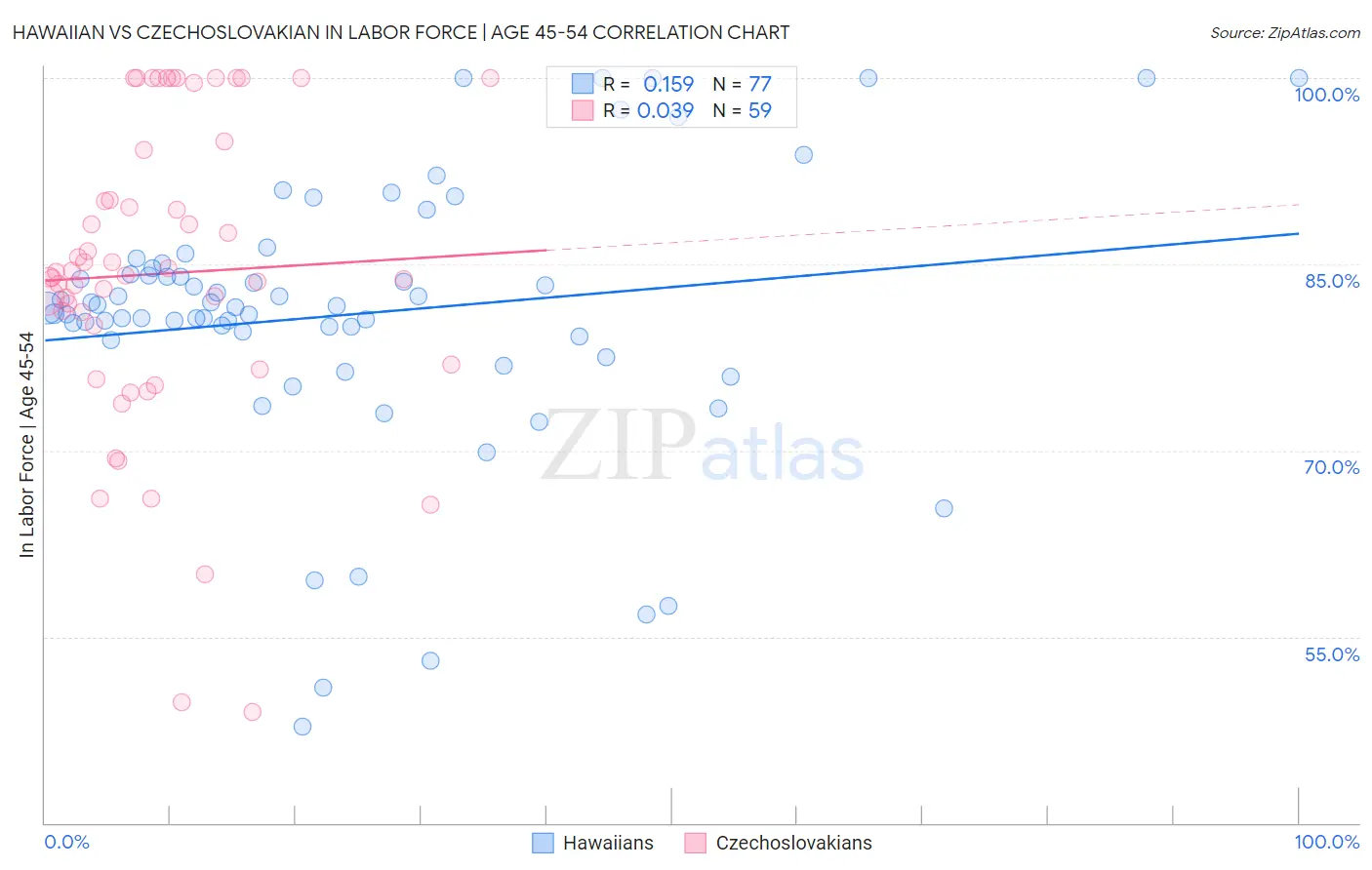Hawaiian vs Czechoslovakian In Labor Force | Age 45-54 Correlation Chart
