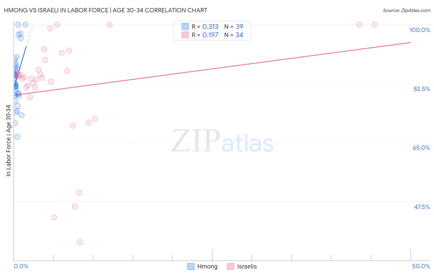 Hmong vs Israeli In Labor Force | Age 30-34 Correlation Chart