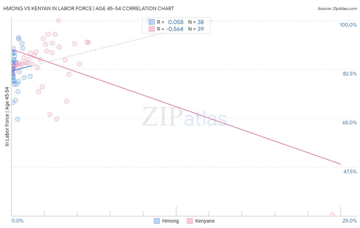 Hmong vs Kenyan In Labor Force | Age 45-54 Correlation Chart