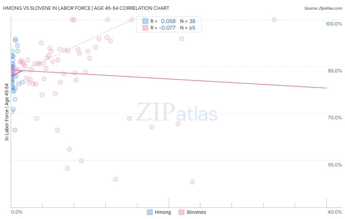 Hmong vs Slovene In Labor Force | Age 45-54 Correlation Chart