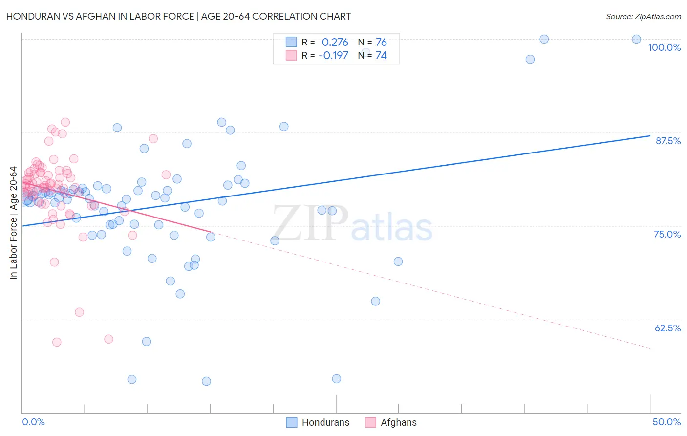 Honduran vs Afghan In Labor Force | Age 20-64 Correlation Chart