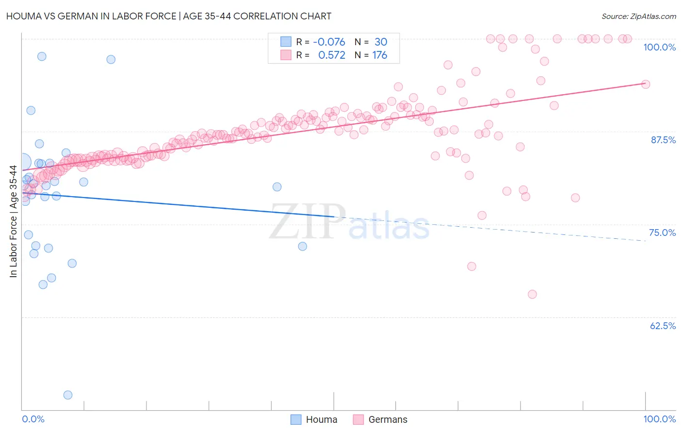 Houma vs German In Labor Force | Age 35-44 Correlation Chart