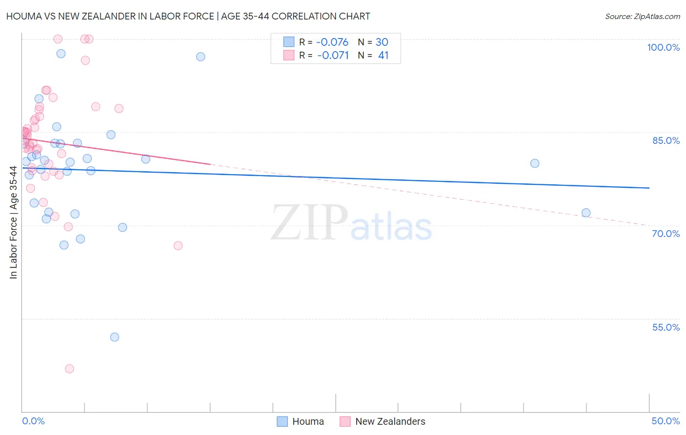 Houma vs New Zealander In Labor Force | Age 35-44 Correlation Chart