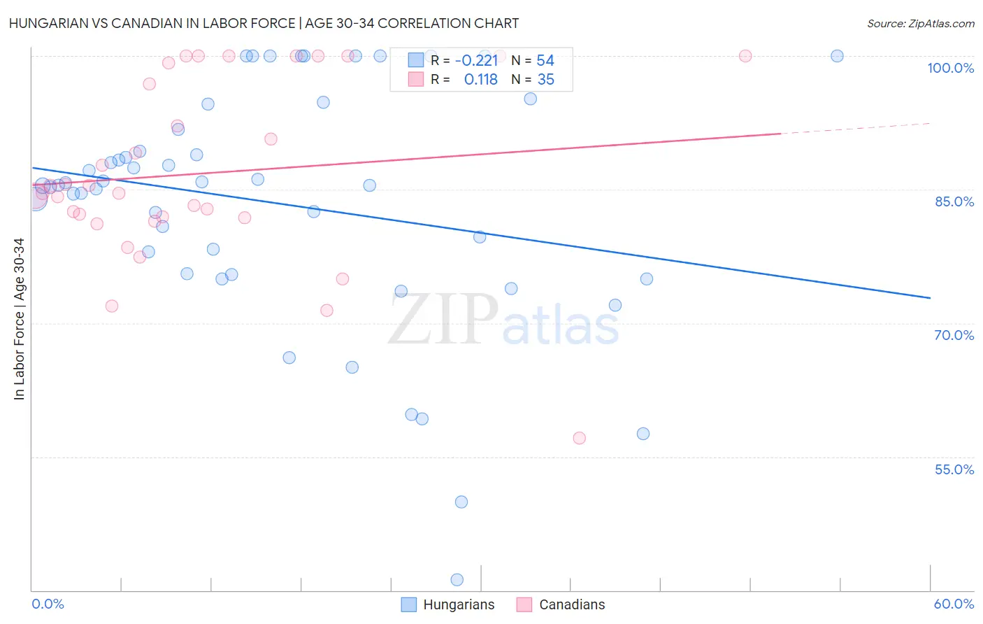Hungarian vs Canadian In Labor Force | Age 30-34 Correlation Chart