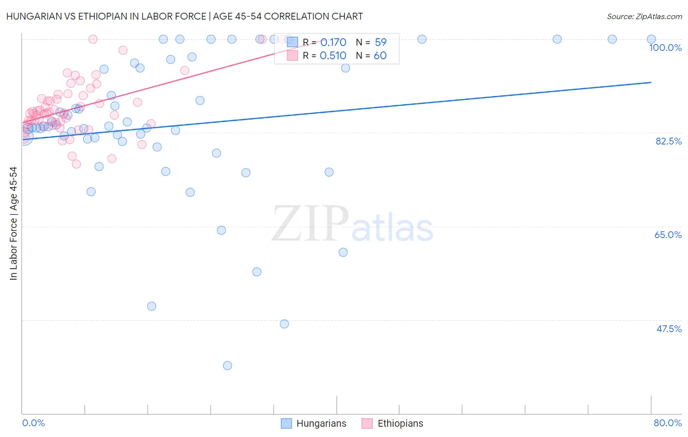 Hungarian vs Ethiopian In Labor Force | Age 45-54 Correlation Chart