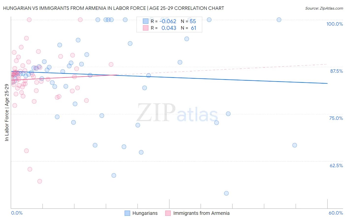 Hungarian vs Immigrants from Armenia In Labor Force | Age 25-29 Correlation Chart