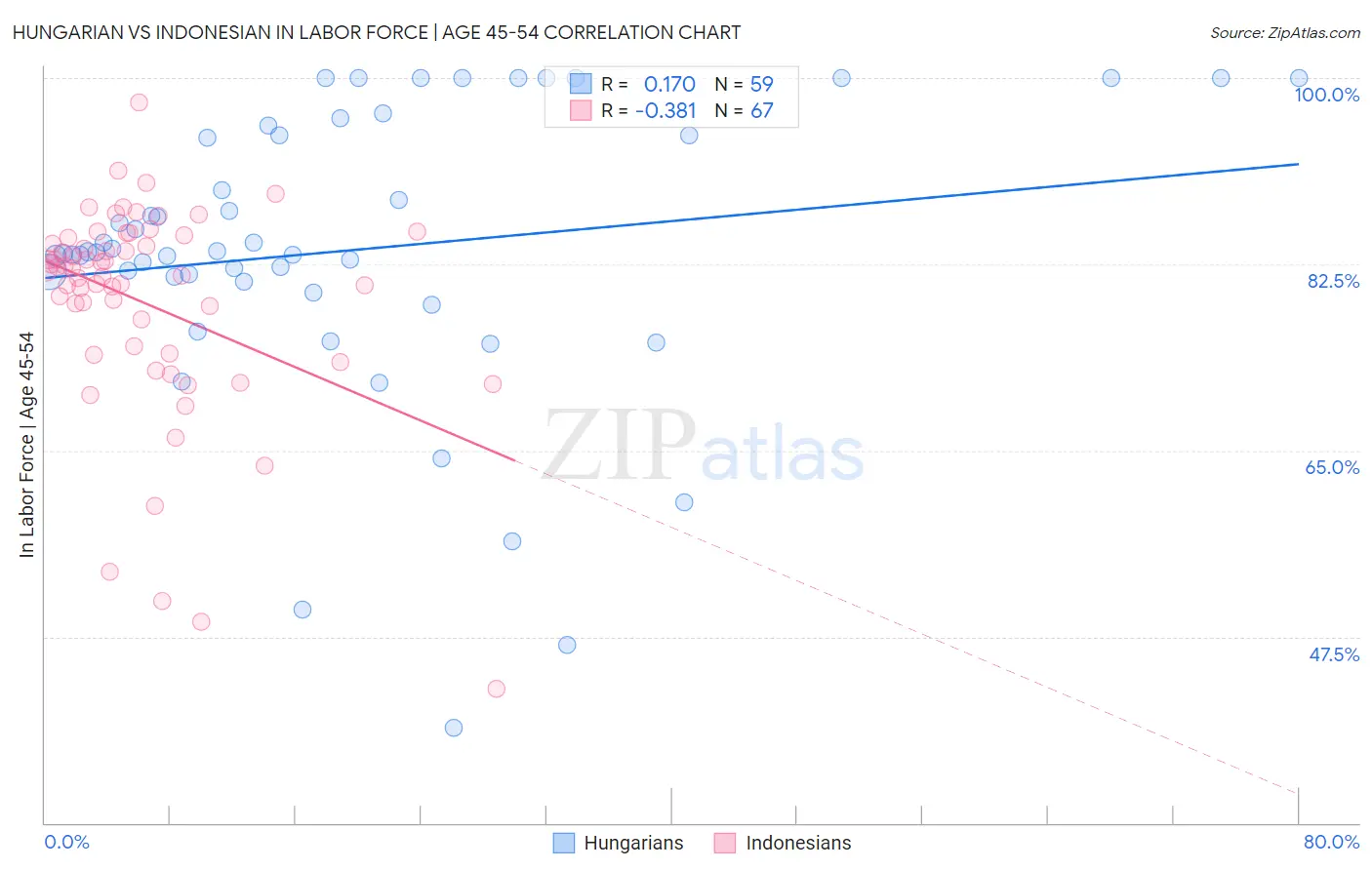 Hungarian vs Indonesian In Labor Force | Age 45-54 Correlation Chart