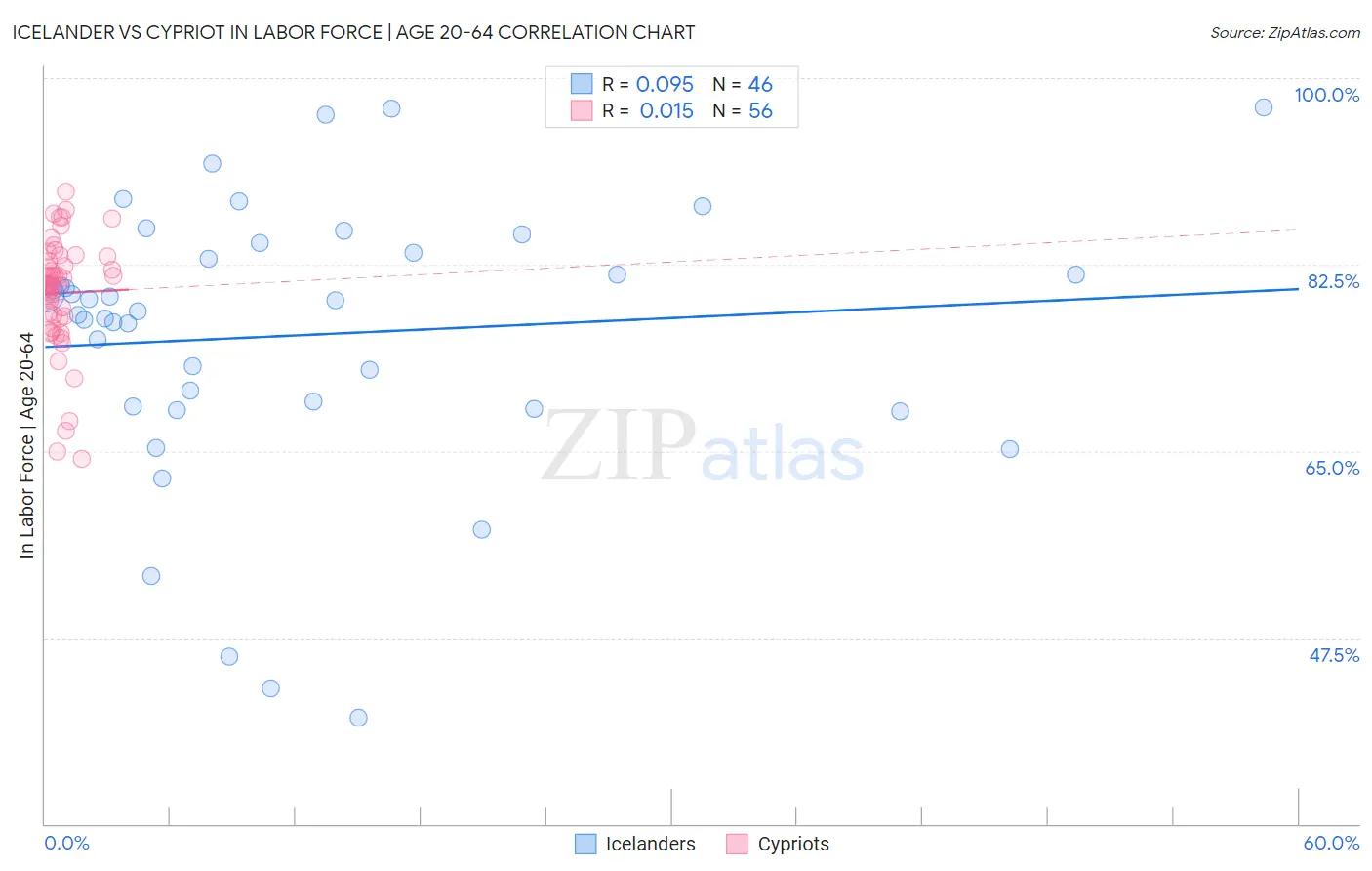 Icelander vs Cypriot In Labor Force | Age 20-64 Correlation Chart