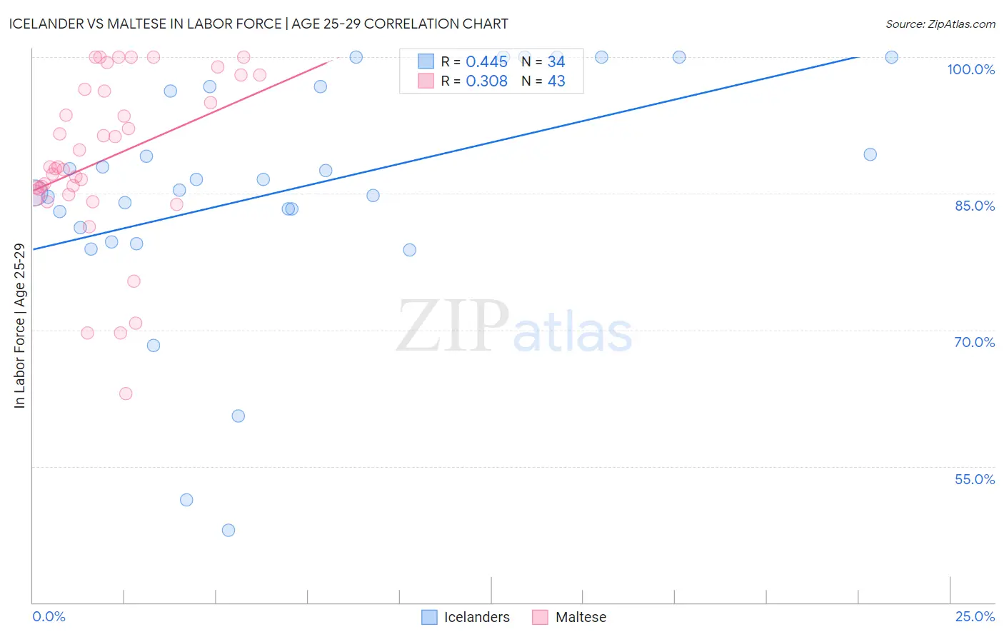 Icelander vs Maltese In Labor Force | Age 25-29 Correlation Chart