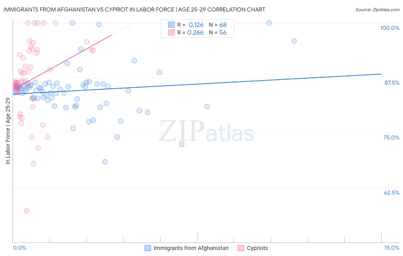 Immigrants from Afghanistan vs Cypriot In Labor Force | Age 25-29 Correlation Chart
