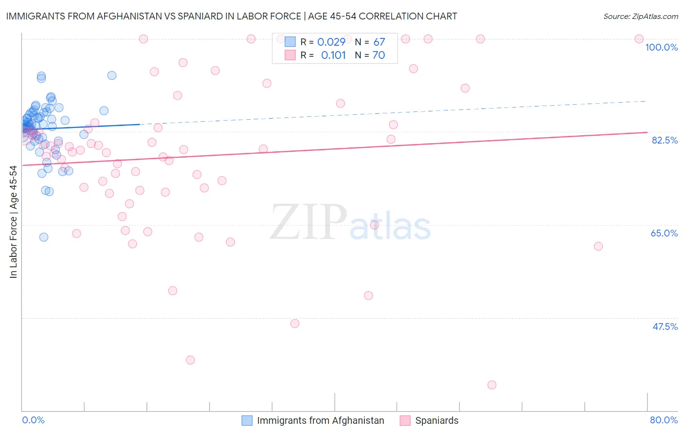 Immigrants from Afghanistan vs Spaniard In Labor Force | Age 45-54 Correlation Chart