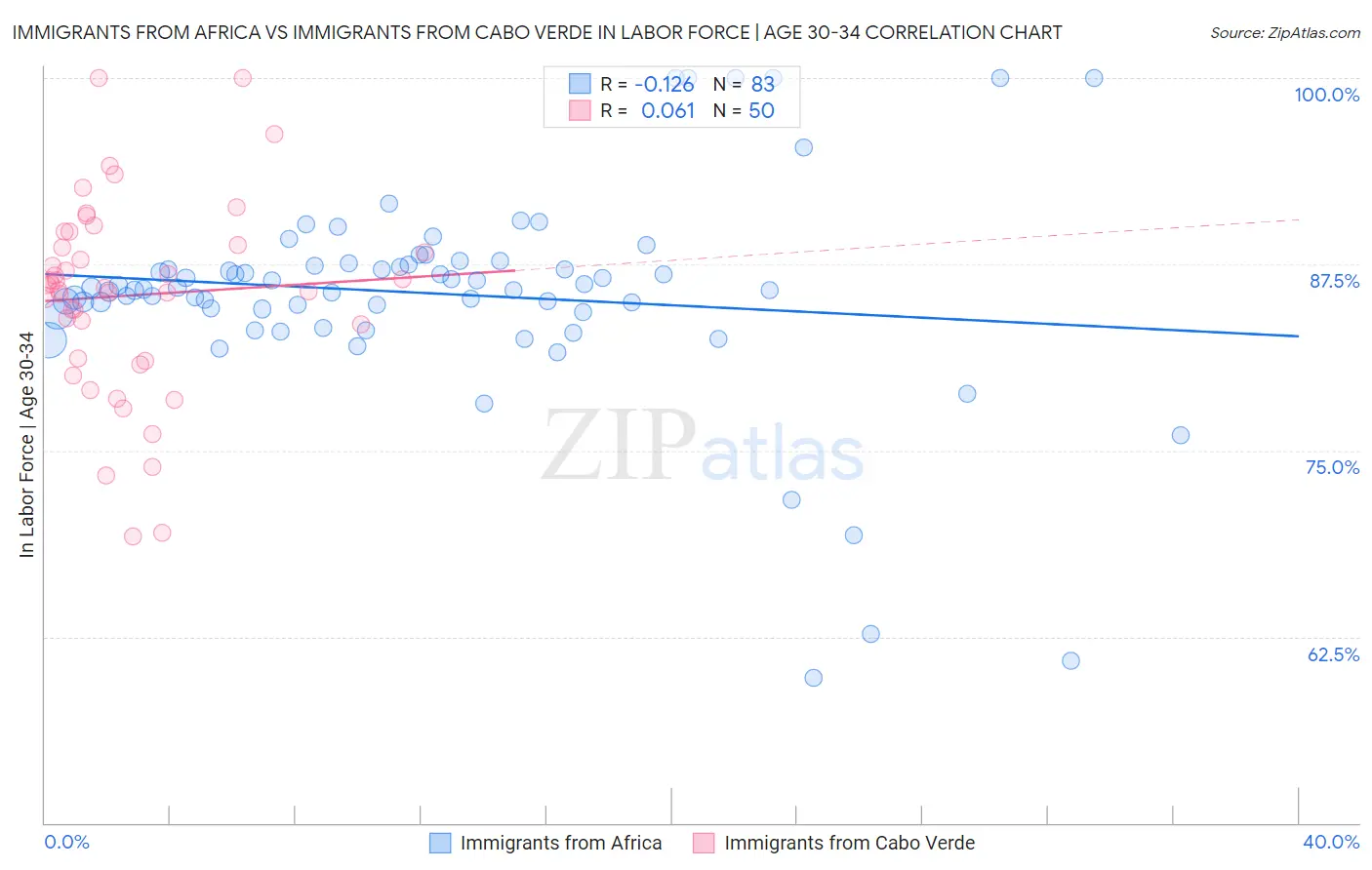Immigrants from Africa vs Immigrants from Cabo Verde In Labor Force | Age 30-34 Correlation Chart