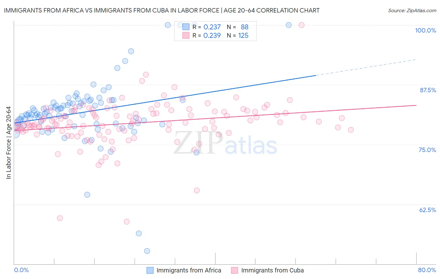 Immigrants from Africa vs Immigrants from Cuba In Labor Force | Age 20-64 Correlation Chart