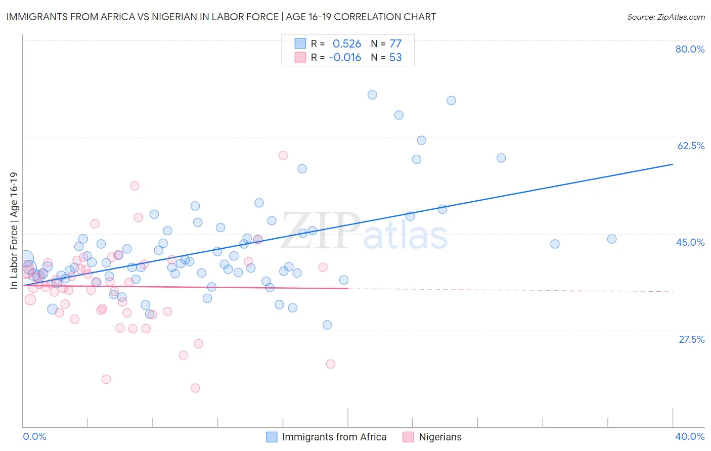 Immigrants from Africa vs Nigerian In Labor Force | Age 16-19 Correlation Chart