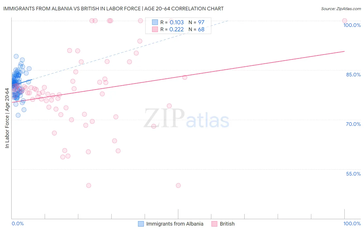 Immigrants from Albania vs British In Labor Force | Age 20-64 Correlation Chart
