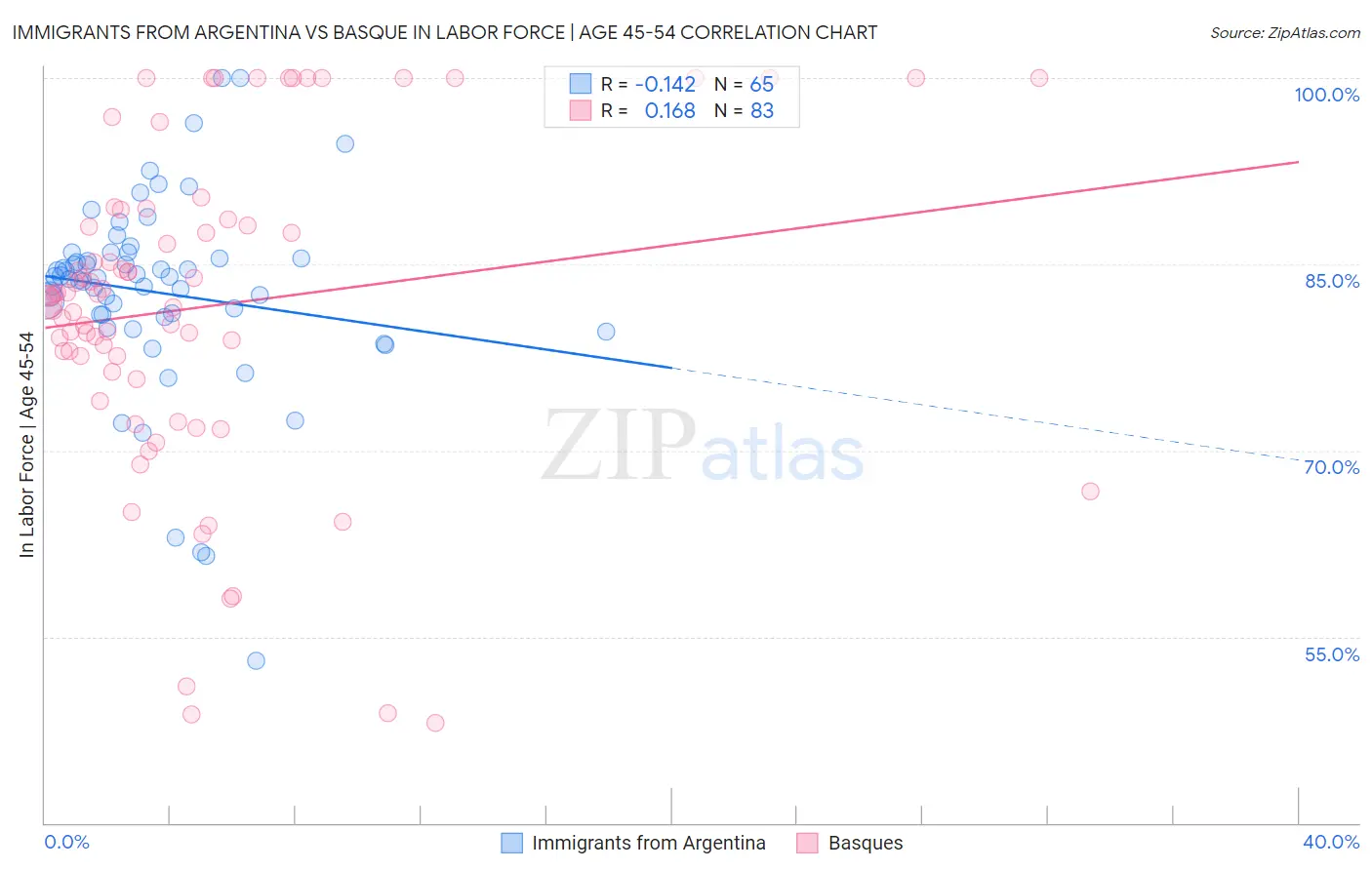 Immigrants from Argentina vs Basque In Labor Force | Age 45-54 Correlation Chart