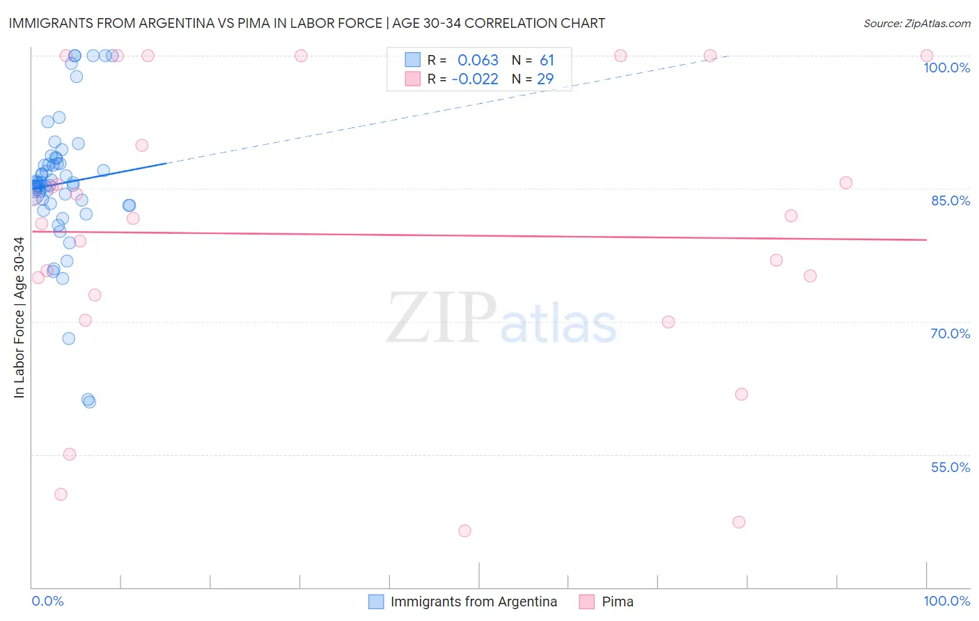 Immigrants from Argentina vs Pima In Labor Force | Age 30-34 Correlation Chart