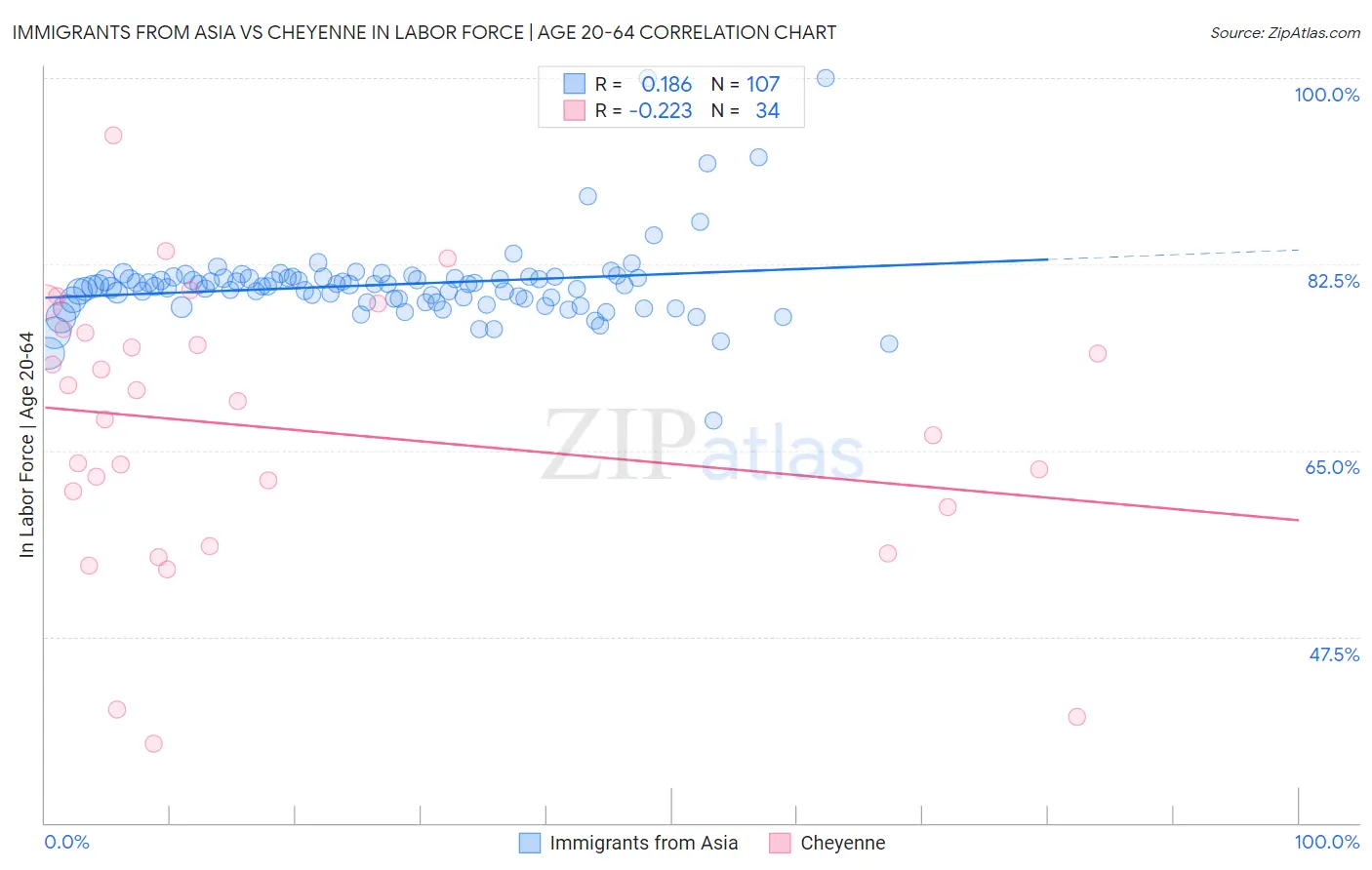 Immigrants from Asia vs Cheyenne In Labor Force | Age 20-64 Correlation Chart