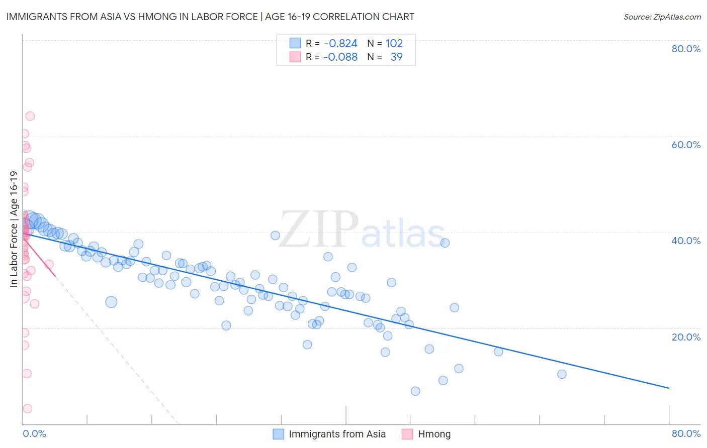 Immigrants from Asia vs Hmong In Labor Force | Age 16-19 Correlation Chart