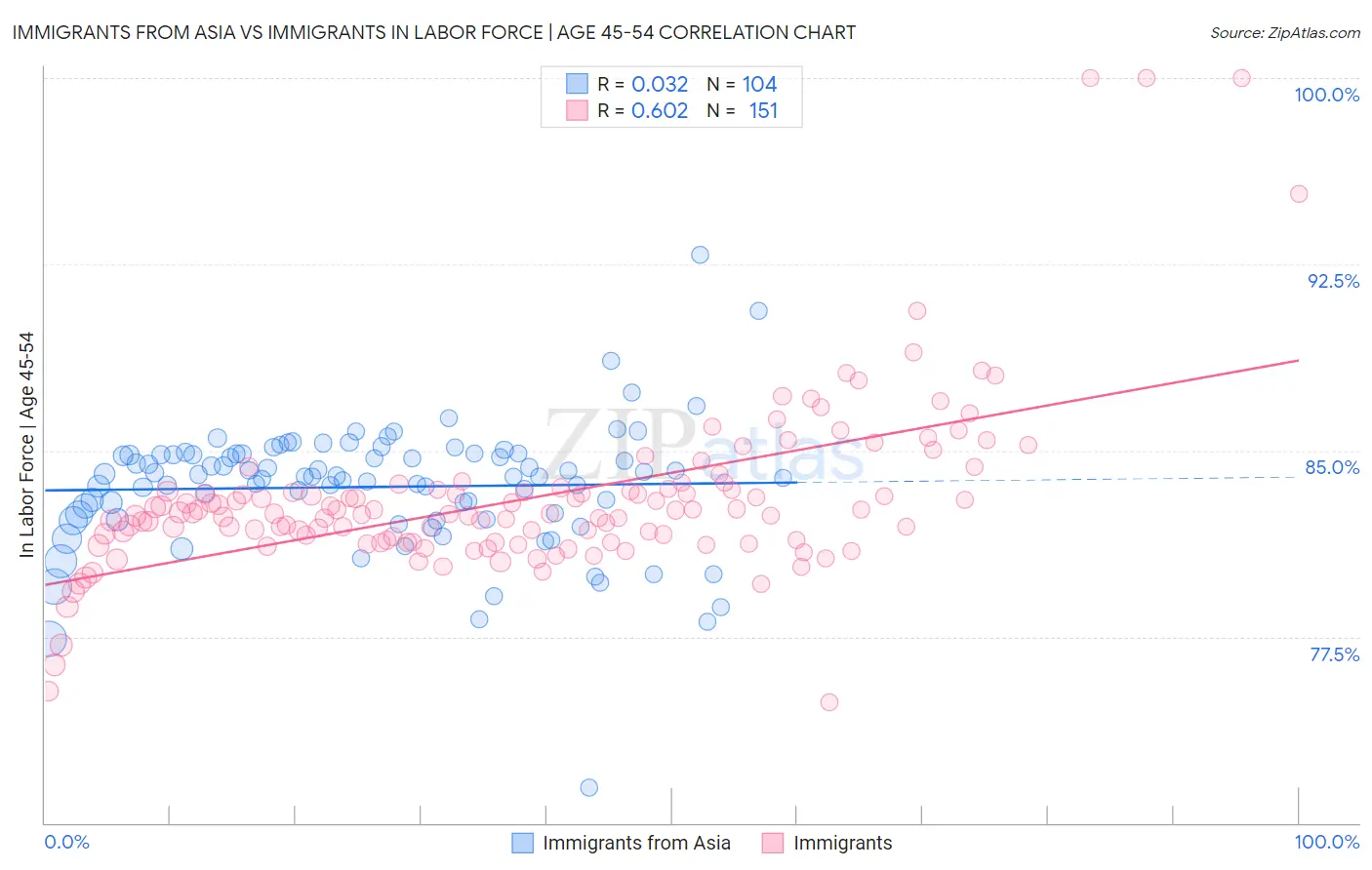 Immigrants from Asia vs Immigrants In Labor Force | Age 45-54