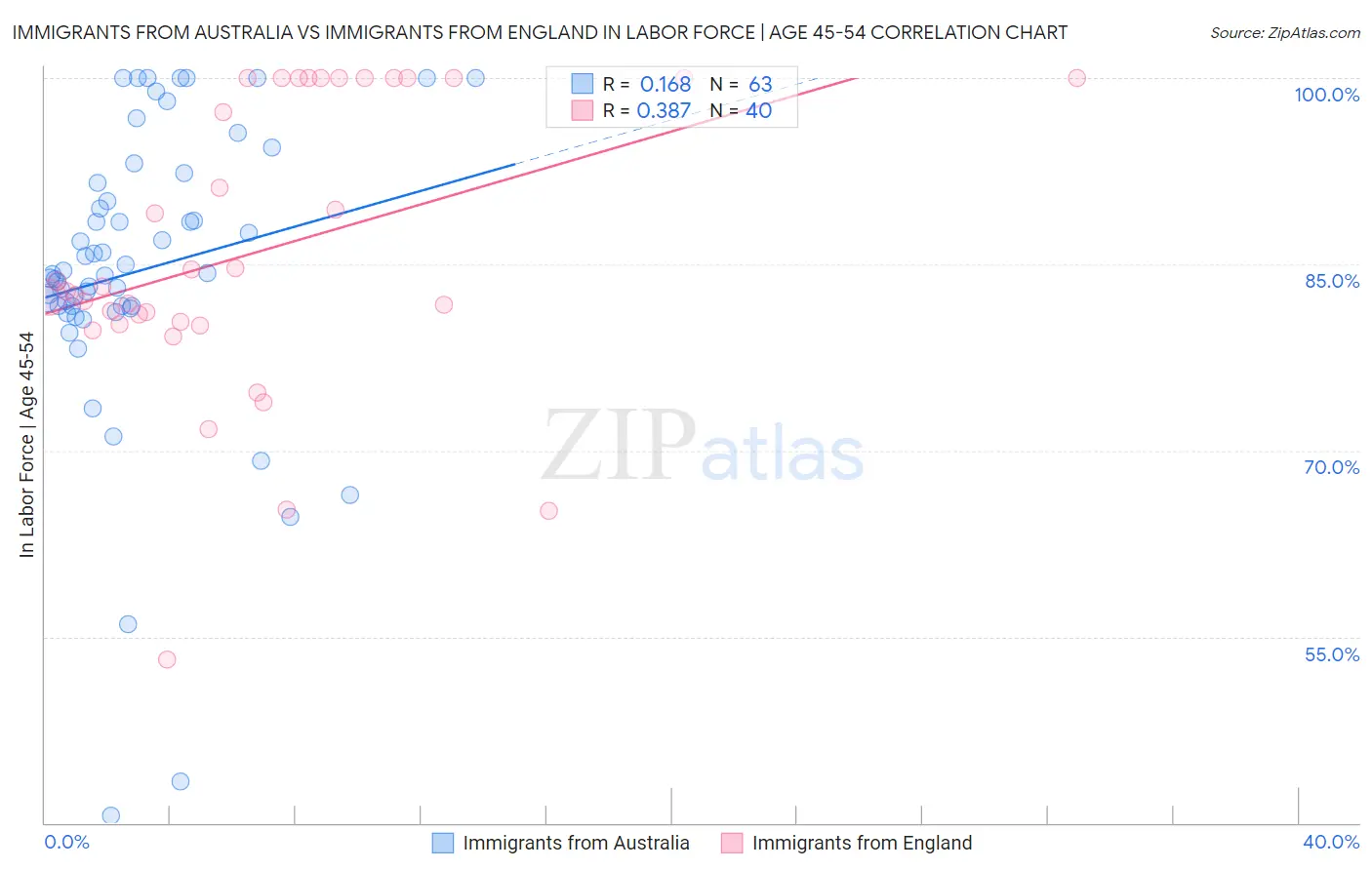 Immigrants from Australia vs Immigrants from England In Labor Force | Age 45-54 Correlation Chart