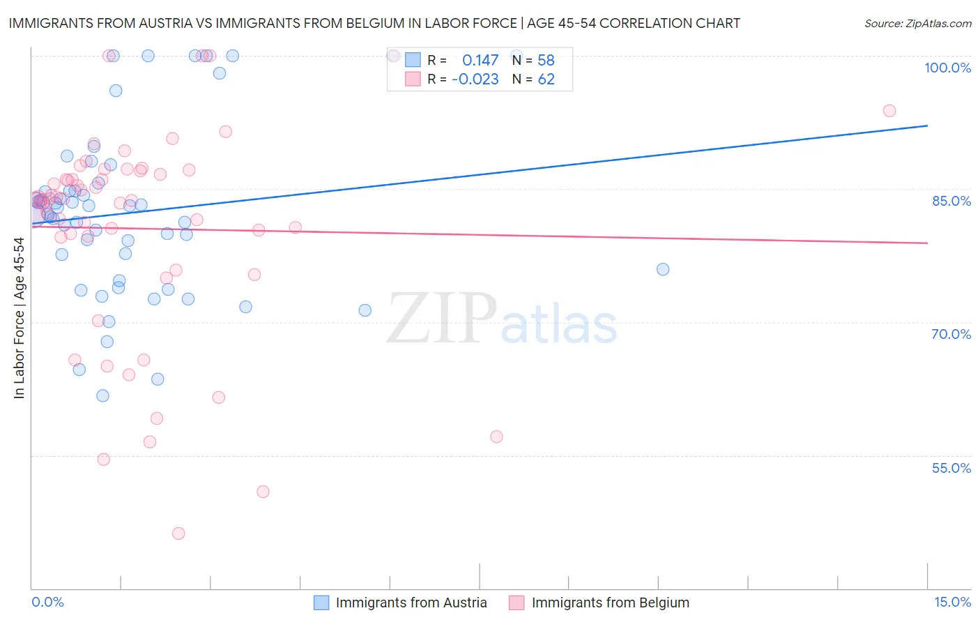 Immigrants from Austria vs Immigrants from Belgium In Labor Force | Age 45-54 Correlation Chart