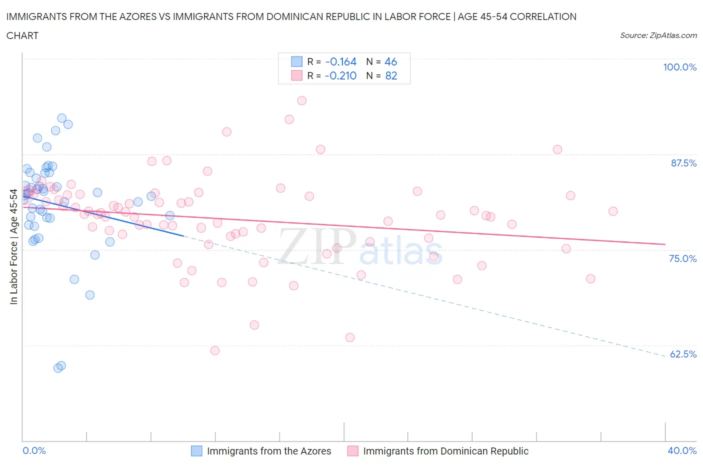 Immigrants from the Azores vs Immigrants from Dominican Republic In Labor Force | Age 45-54 Correlation Chart
