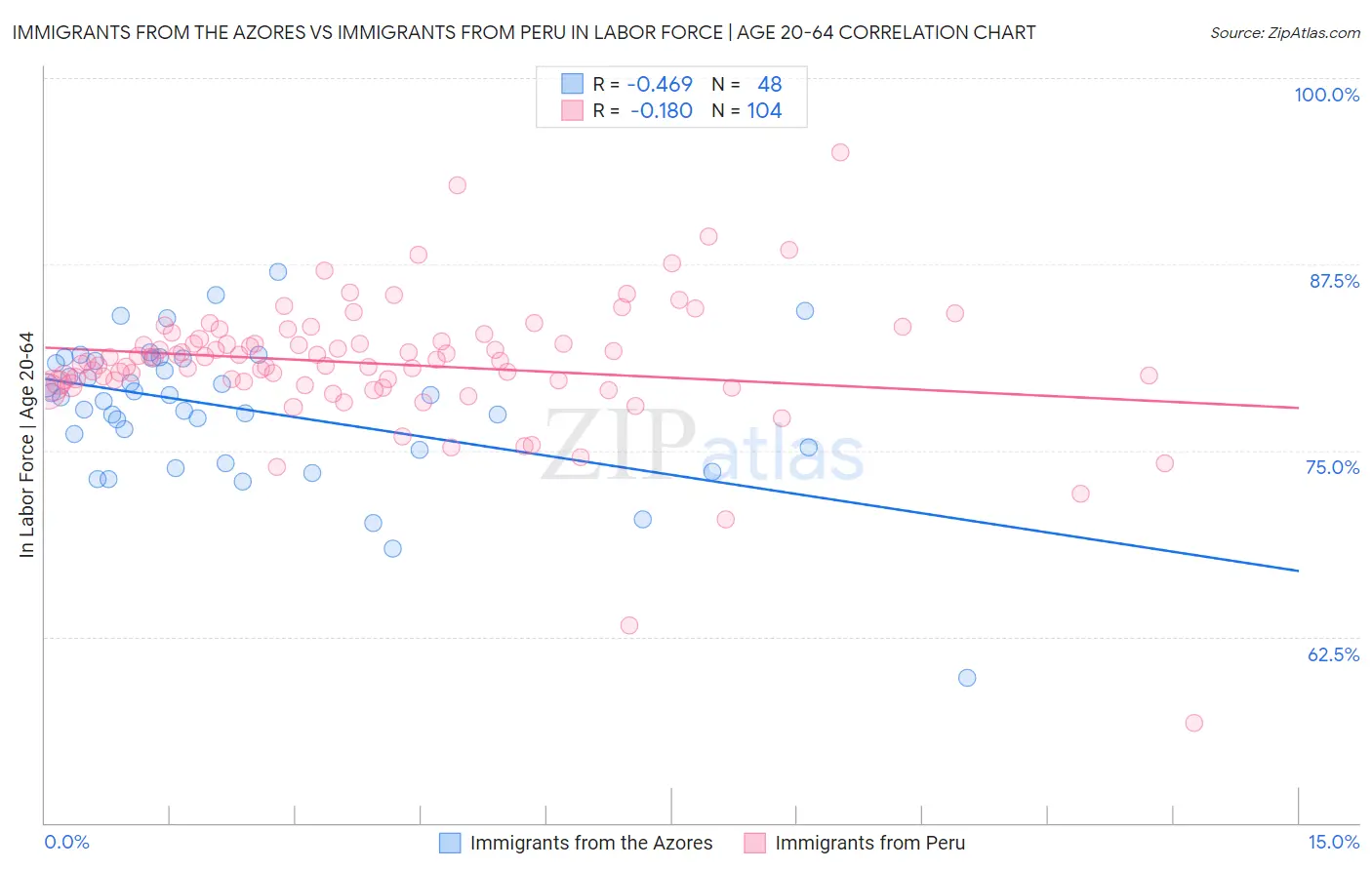 Immigrants from the Azores vs Immigrants from Peru In Labor Force | Age 20-64 Correlation Chart