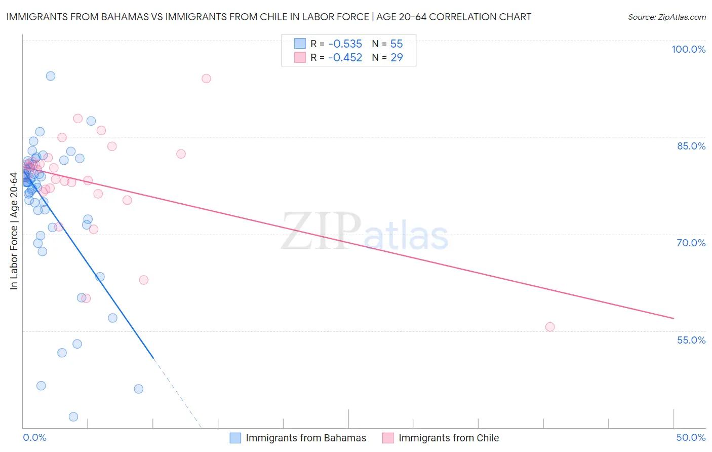 Immigrants from Bahamas vs Immigrants from Chile In Labor Force | Age 20-64 Correlation Chart