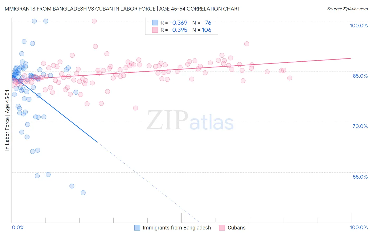 Immigrants from Bangladesh vs Cuban In Labor Force | Age 45-54 Correlation Chart