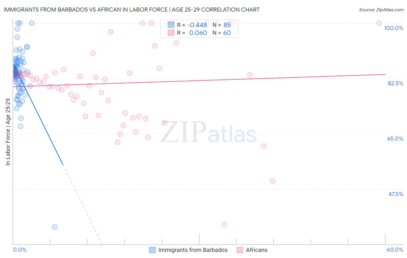 Immigrants from Barbados vs African In Labor Force | Age 25-29 Correlation Chart