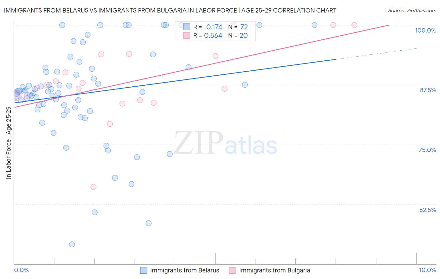 Immigrants from Belarus vs Immigrants from Bulgaria In Labor Force | Age 25-29 Correlation Chart
