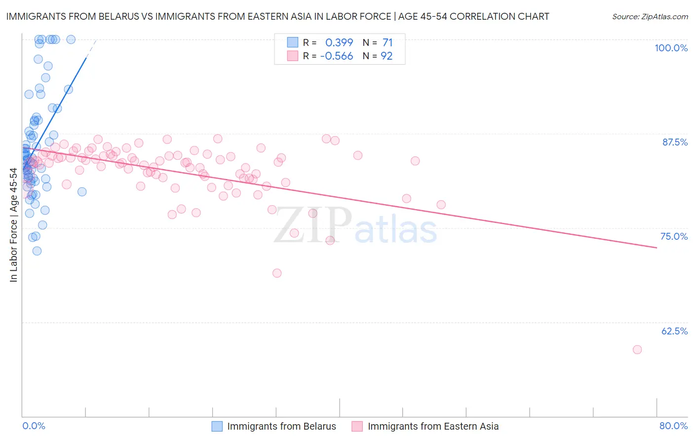 Immigrants from Belarus vs Immigrants from Eastern Asia In Labor Force | Age 45-54 Correlation Chart