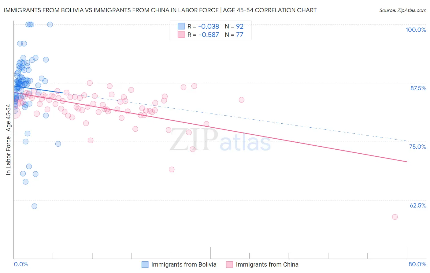 Immigrants from Bolivia vs Immigrants from China In Labor Force | Age 45-54 Correlation Chart