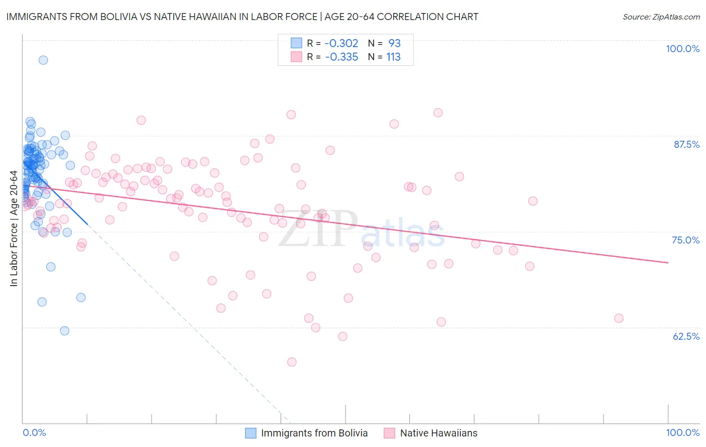 Immigrants from Bolivia vs Native Hawaiian In Labor Force | Age 20-64 Correlation Chart
