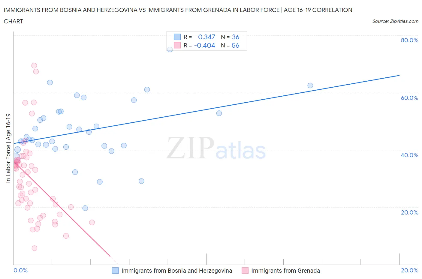 Immigrants from Bosnia and Herzegovina vs Immigrants from Grenada In Labor Force | Age 16-19 Correlation Chart