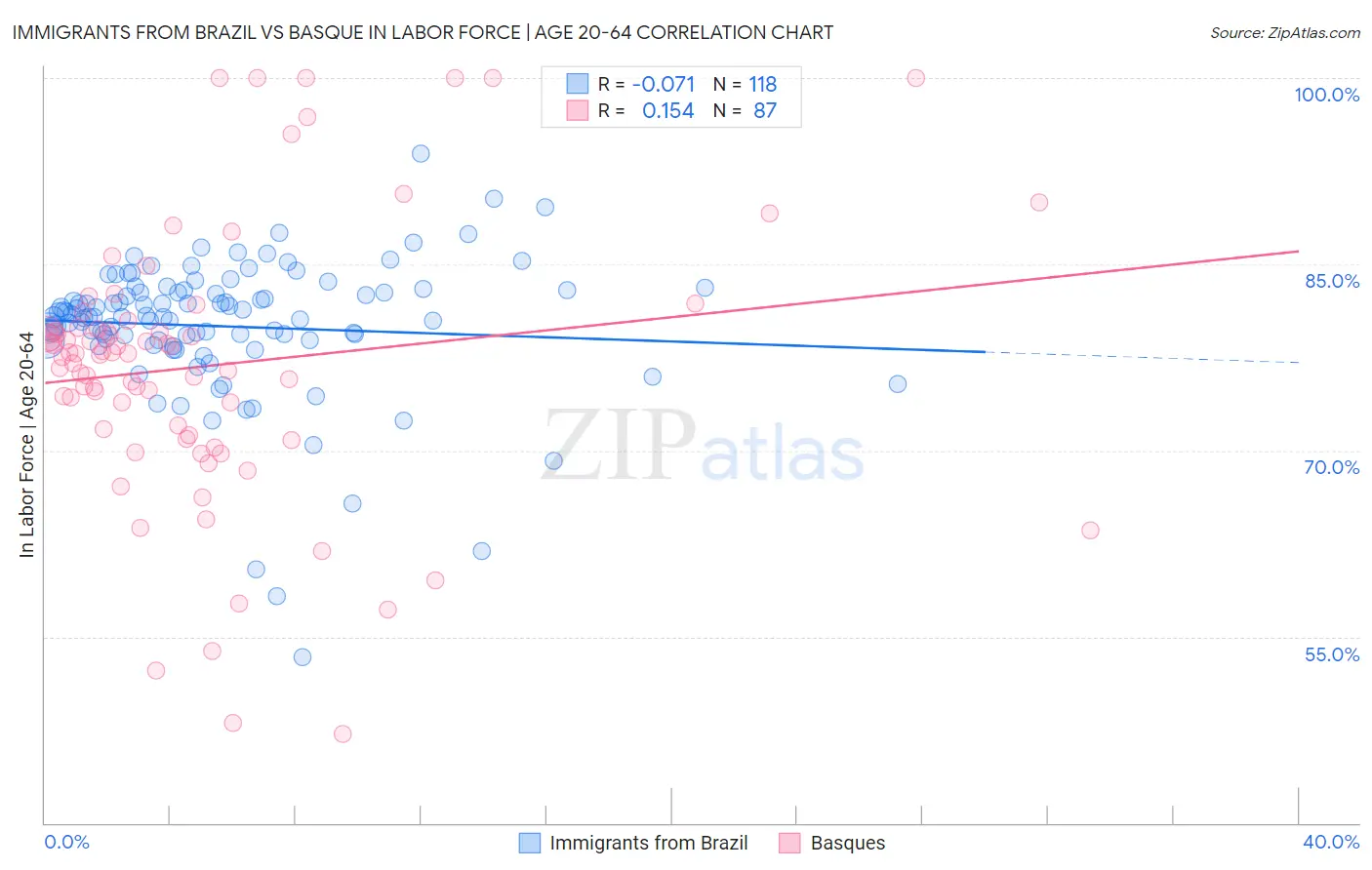 Immigrants from Brazil vs Basque In Labor Force | Age 20-64 Correlation Chart