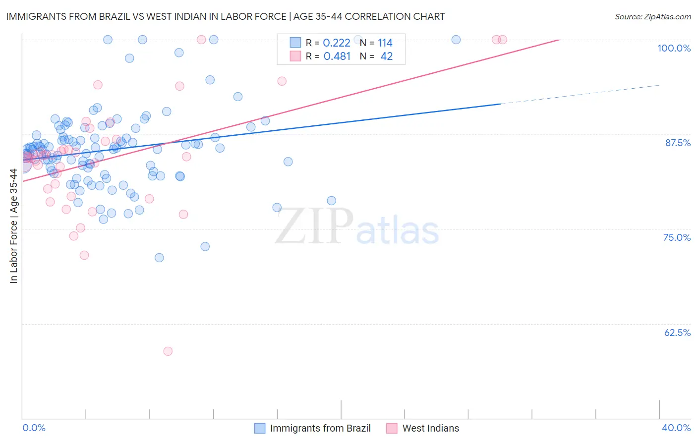 Immigrants from Brazil vs West Indian In Labor Force | Age 35-44 Correlation Chart