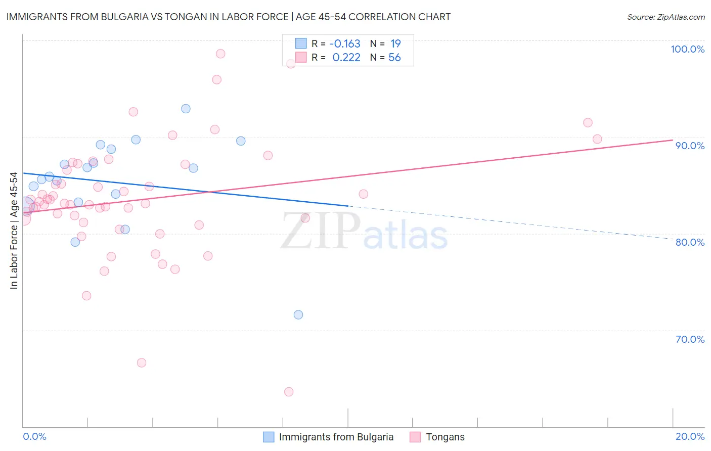 Immigrants from Bulgaria vs Tongan In Labor Force | Age 45-54 Correlation Chart