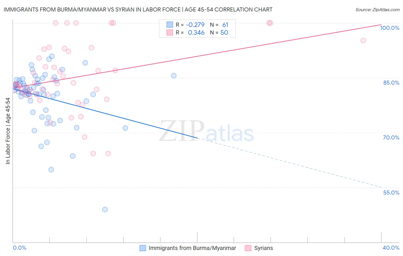Immigrants from Burma/Myanmar vs Syrian In Labor Force | Age 45-54 Correlation Chart