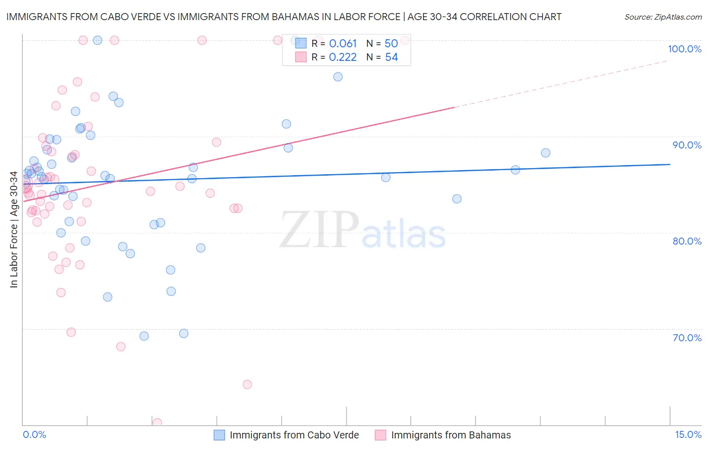 Immigrants from Cabo Verde vs Immigrants from Bahamas In Labor Force | Age 30-34 Correlation Chart