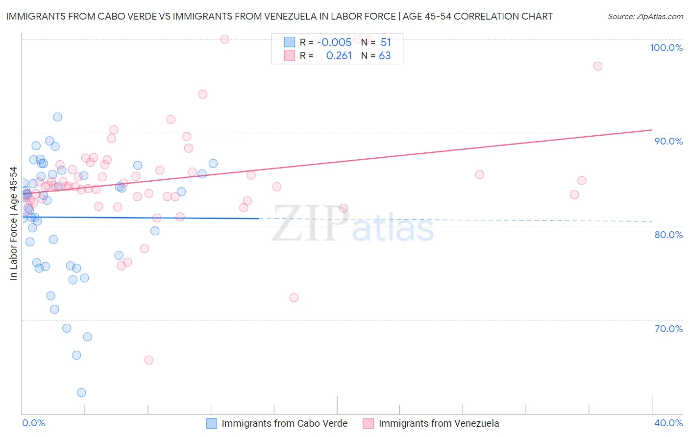 Immigrants from Cabo Verde vs Immigrants from Venezuela In Labor Force | Age 45-54 Correlation Chart