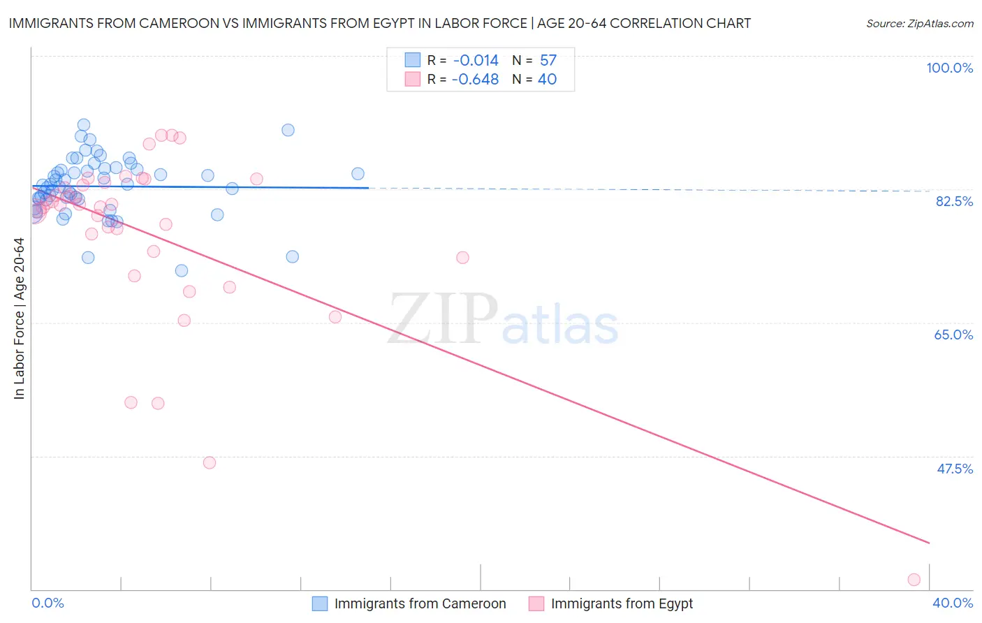 Immigrants from Cameroon vs Immigrants from Egypt In Labor Force | Age 20-64 Correlation Chart